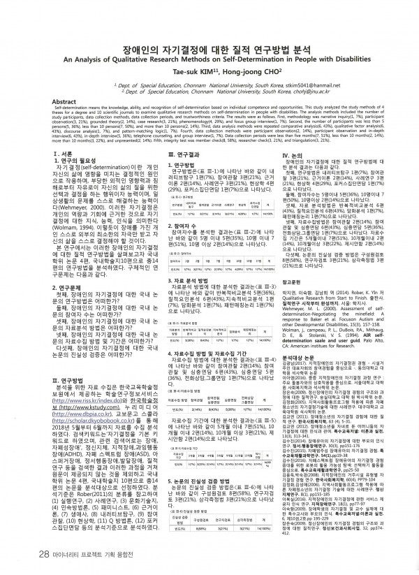 장애인의 자기결정에 대한 질적연구 방법 분석